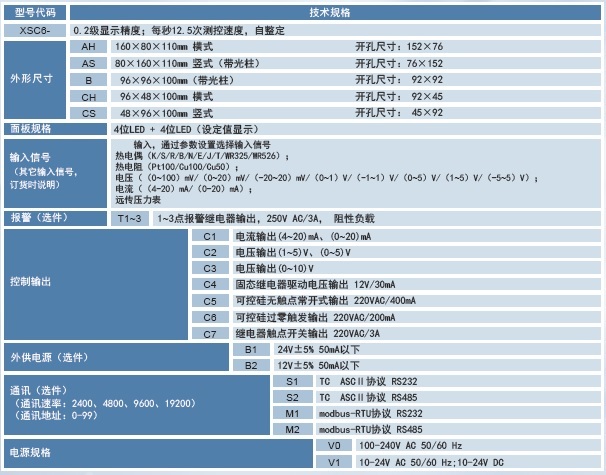 XSC5系列PID智能调节仪与各类传感器、变送器配合,可实现对温度、压力、液位、成分等过程量的测量、变换、显示、通讯和控制。