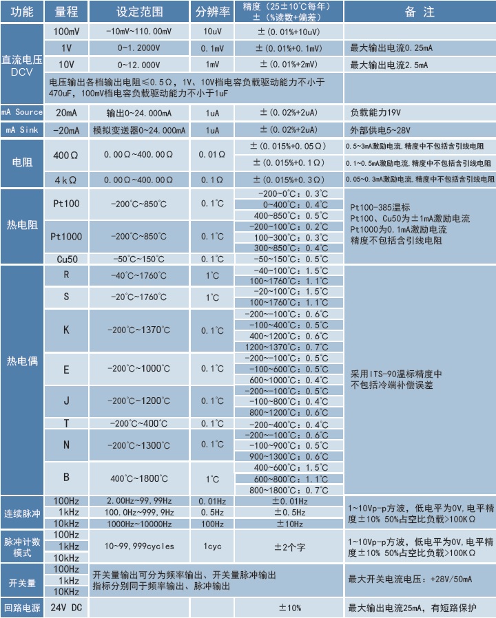 MMB高精度信号发生器可输出:电阻、mV、直流电流、直流电压、脉冲信号、开关量、24V回路供电以及热电阻、热电偶等